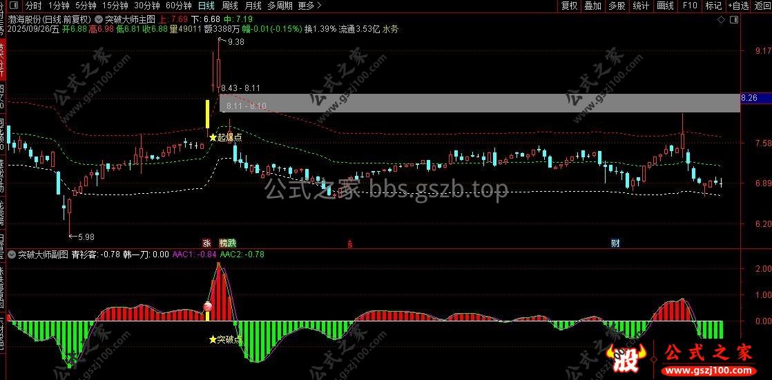 副图结合了量能和MACD,旨在提高反转和突破的成功率。